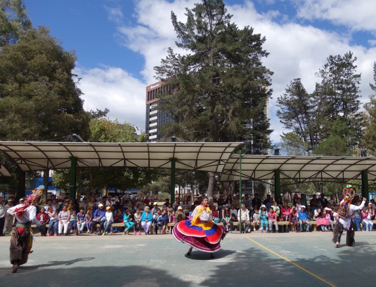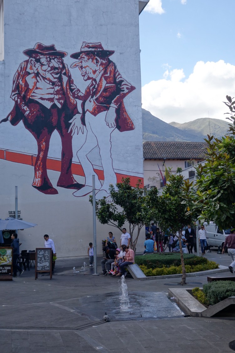 I settled in beneath a tree with my book and woke an hour later after an unexpected snooze. A groggy lap of the park took me past a traditional dance performance, street performers entertaining crowds within grass-lined amphitheatres, overcrowded benches with elderly men engaged in heated card games, food vendors, and playgrounds which had the 5 year-old within quivering with excitement. The peripheries of the lively park were lined with artists selling their suspiciously similar paintings and coca leaf etchings. The overbearing soundtrack was being provided by a father-daughter duo belting out a panpipe, guitar and vocal version of the Cranberries’ ‘Zombie’. Strangely, I heard this song over a dozen times during my few days in Quito. The Cranberries are either experiencing an epic Latin American revival, or it has taken a while for Ecuadorians to warm to Dolores’ unique shrill.