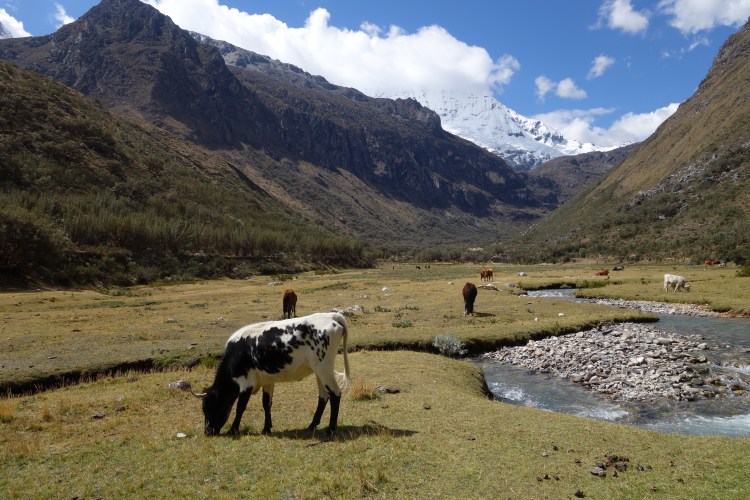 Ideally, I would attempt to articulately describe the trail to Laguna 69 (‘apparently’, out of the 80-odd lakes in the region, this was the only one they couldn’t think of a name for). However, the walk up the valley between waterfalls, grazing alpine cattle, glacier-cloaked peaks, and wildflowers was one of the toughest days of walking I’ve ever had. The bug within my guts was having a field day and, combined with the altitude of 4500+ meters, forced me to sit and rest every hundred meters. Eventually, I was passed by other walkers, and the further along I pushed, the more vulnerable I began to feel. The scenery was spectacular, but I’ll let the photos do the talking.
