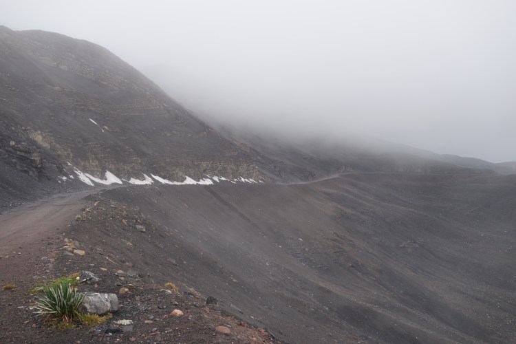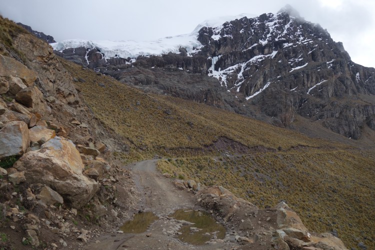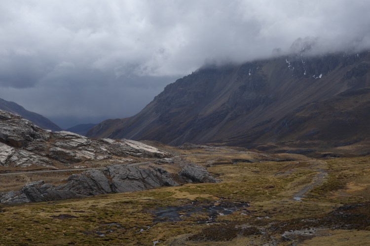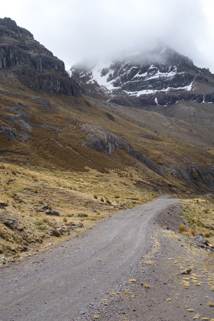 As the afternoon grew older, I rounded each blind corner with increasing optimism only to discover the road continuing to rise into the sky. Eventually, roadside vegetation was reduced to only the hardiest shrubs, growing out of the shale that coated the now lunar landscape. Another snow cloud rolled over the top of the pass, rendering the view from the top of the 4900m highpoint, more or less nonexistent. Riding within a cold, wet cloud I commenced the descent to where the Pastoruri Highway rejoins central Peru’s major sealed thoroughfare. As I relinquished the elevation I’d worked so hard to gain over the last two days, the snow turned to rain. Breaks in the sheeting precipitation afforded views of hanging alpine lakes, as well as glimpses of the shimmering asphalt in the valley below. Despite the immediate appeal of the smooth surface, free of corrugations and loose stones, I was somewhat hesitant to leave the ruggedness of the Pastoruri Highway. Not only was the landscape one of the more diverse alpine regions I have ever passed through, but the evident and continual alterations as a result of a changing climate serve as a subtle reminder to tread lightly.
