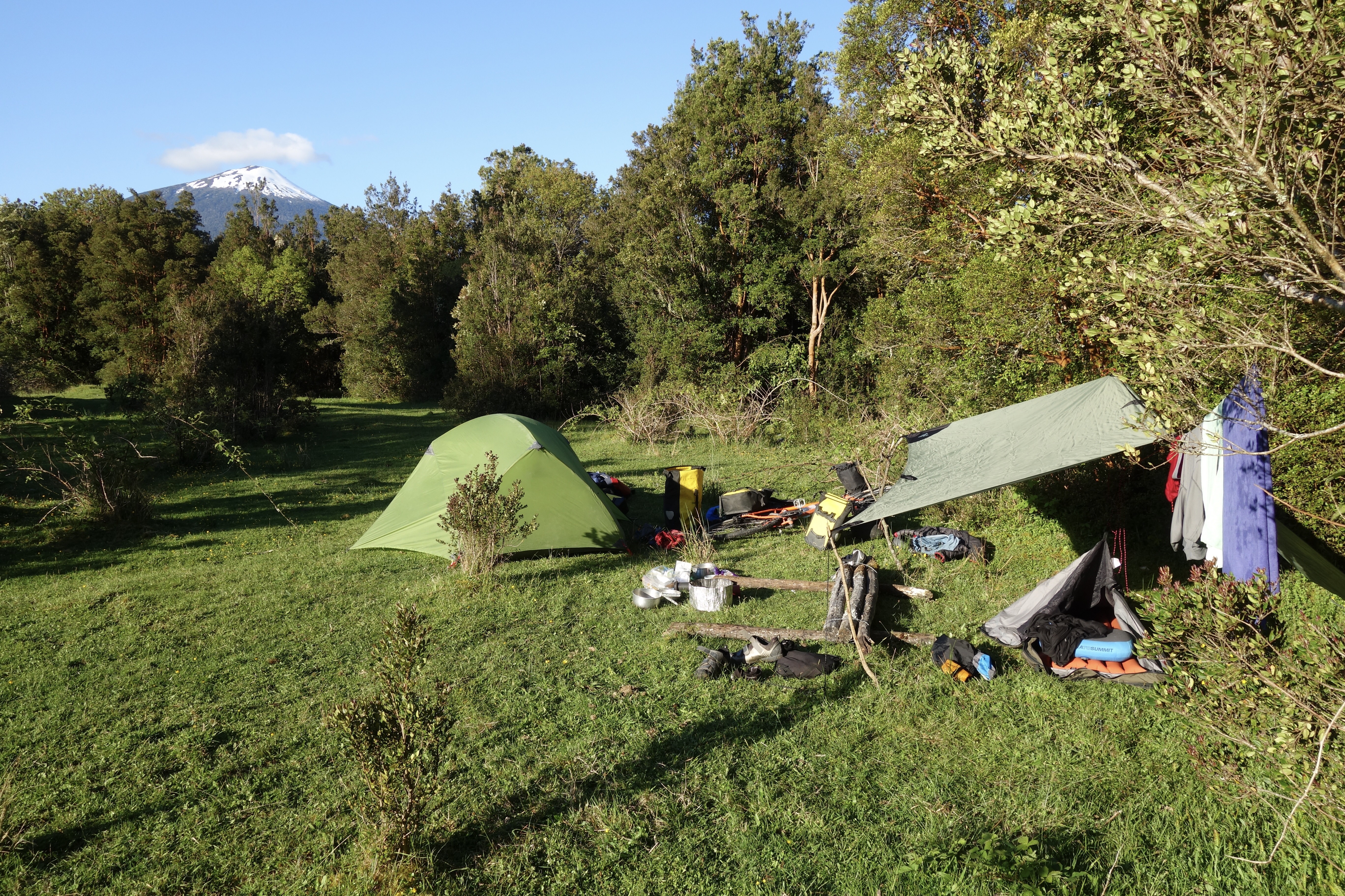 Cycling slowly through the centre of town, I looked back to see that Dad had struck up a conversation with a local man. I doubled back and pulled up next to them, where I quickly realised that Dad was being offered marijuana. His politeness coupled with a complete lack of Spanish had meant that he’d entertained the conversation for much longer than necessary. However, before parting ways with the prospective dealer, I did ask him about possible camp sites. Despite his disappointment that we more interested in his local knowledge than what he had in his backpack, he did explain that we could camp on the other side of the Rio Blanco; a major river that enters the sea at Hornopirén. We continued out of town until we found a bridge which delivered us to the large riverside reserve that I suspect he had been talking about. After a little scouting, we struck gold and set up camp on a luscious patch of grass amongst a tall stand of trees.