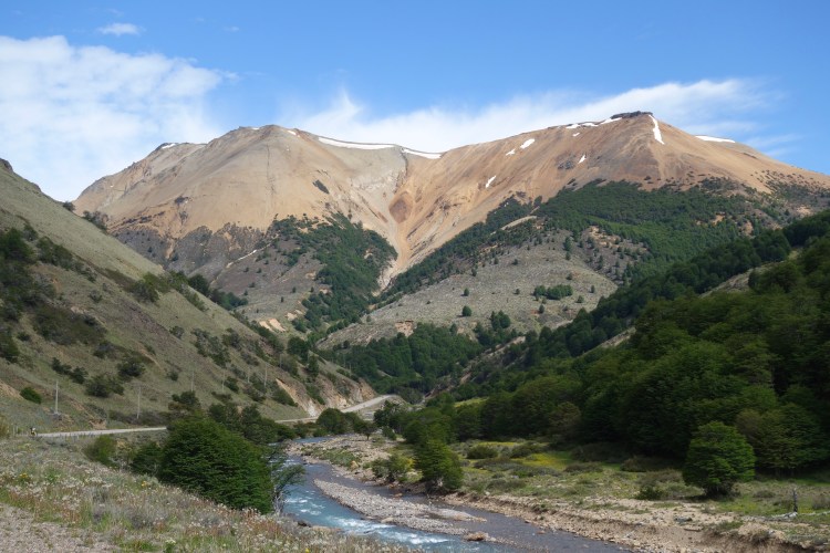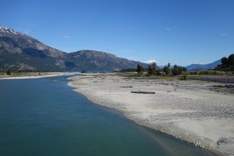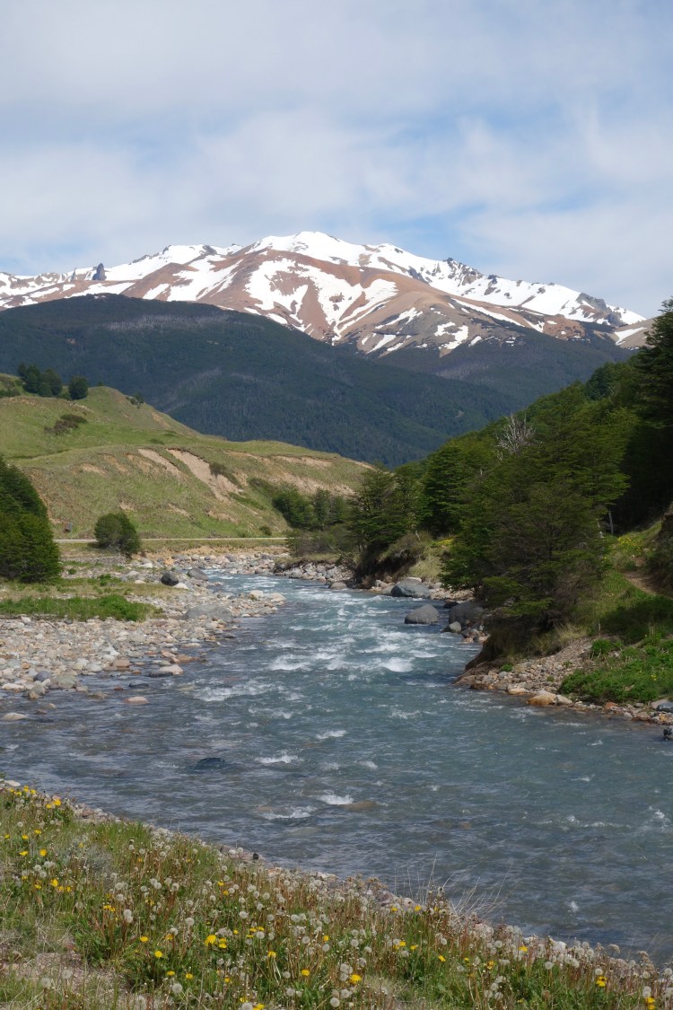 After breaking camp and packing the bikes, we went for a quick stroll around Laguna Chiguay. The aquamarine water, cloudless blue sky, and yellow dandelions created a palette of positivity and happiness. We rolled back to the main road and embarked on what was another remarkable morning of riding. The mountains to either side of us increased in grandeur and ruggedness the further we rode, while swallows playing high against the sun cast shadows ten times their size. Snowmelt from the higher peaks trickled down creases and folds in the hills, feeding clear rivers that raced over beds of ochre, slate, and mocha coloured stones. I could have easily set up camp on the grassy riverbank and spent the day stalking trout. The final descent into Villa Cerro Castillo was comprised of several fast, sweeping switchbacks. I watched on in both horror and total awe as Dad threw caution to the wind, lowering his body position to generate speed and overtaking a truck with ease! He looked so impressed with his renegade riding when I caught up with him.