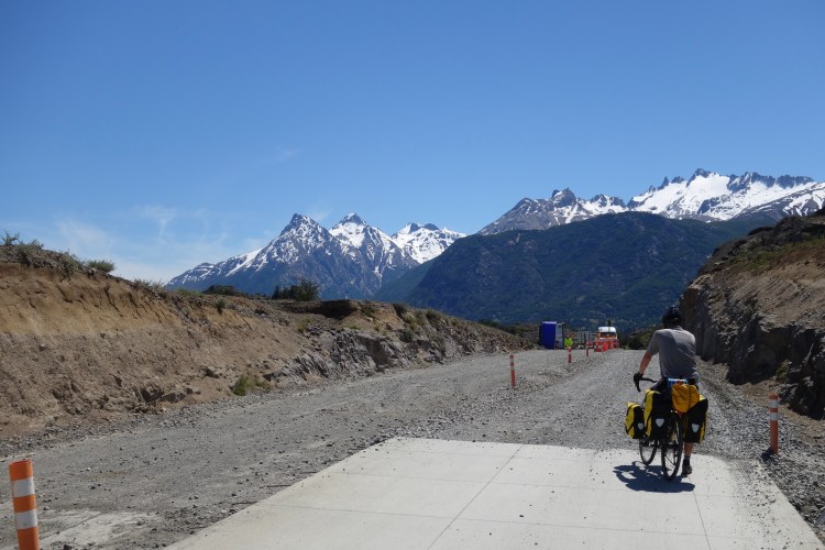 We were introduced to ripio as soon as we passed the speed limit sign on the edge of town. Dad was anxious about the strength of his repaired wheel but, after a couple of bone jarring corrugations, all concerns soon went out the window. Fortunately, the grade of gravel increased, and the road became smoother after a few kilometres. An hour after leaving Villa Cerro Castillo, we rounded a corner to discover that the road was closed due to rock blasting. A man in a hardhat regurgitated a spiel he had clearly been instructed to give everyone who was forced to stop.
