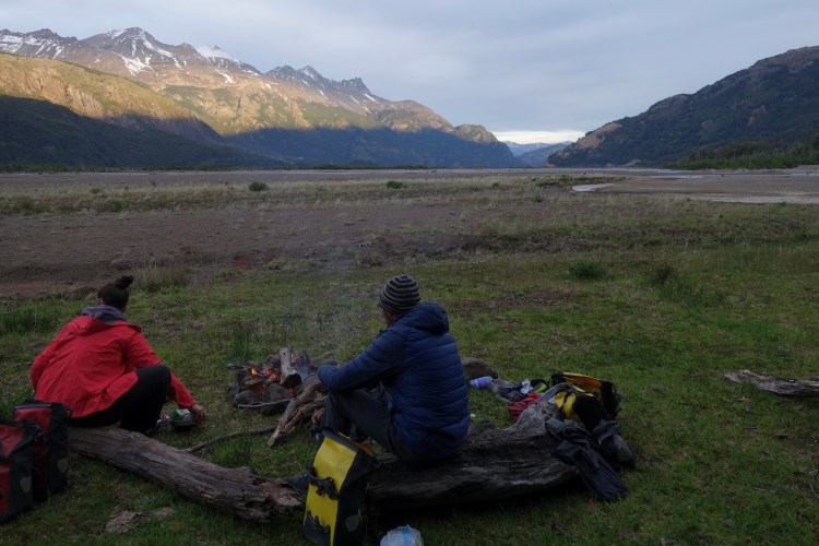 A slow, steep climb followed by a reciprocally fast descent, lead us past the turquoise waters of Laguna Verde and onto the floor of the expansive Rio Ibáñez valley. The Rio Ibáñez is a major tributary to the famed General Carrera Lake further south. The braided streams meandering through the valley were again indicative of the monstrous flows that must torment these areas each spring. The mountain views from the valley were utterly mind-blowing. We soon caught Sophie who initiated the conversation of where to camp. Collectively, we began riding with eyes peeled until we found a lush meadow that was hidden from the road and had an icy cold creek flowing past. An hour later, we had set up camp, taken turns to wash in the creek, and built a firepit from river stones. Conversation was gentle over the course of the evening as we gazed upwards towards the thick blanket of stars in the moonless sky. As we were heading to bed, I asked Sophie how old she thought Dad was. Without hesitation, she accurately guessed ‘60’. I lay in my bivvy, looking up at the stars and listening to Dad complaining from his tent that the days are over where people are shocked when they hear his age.