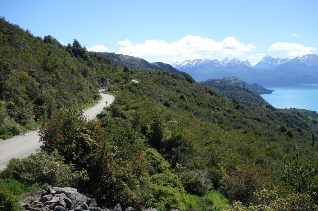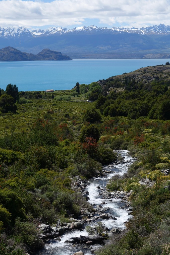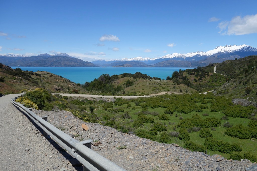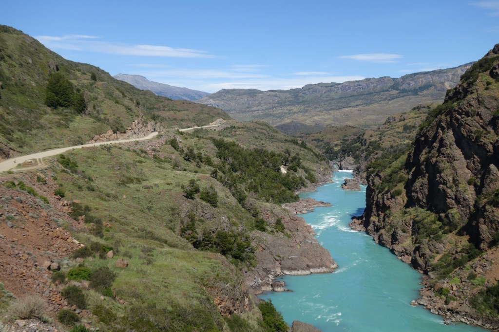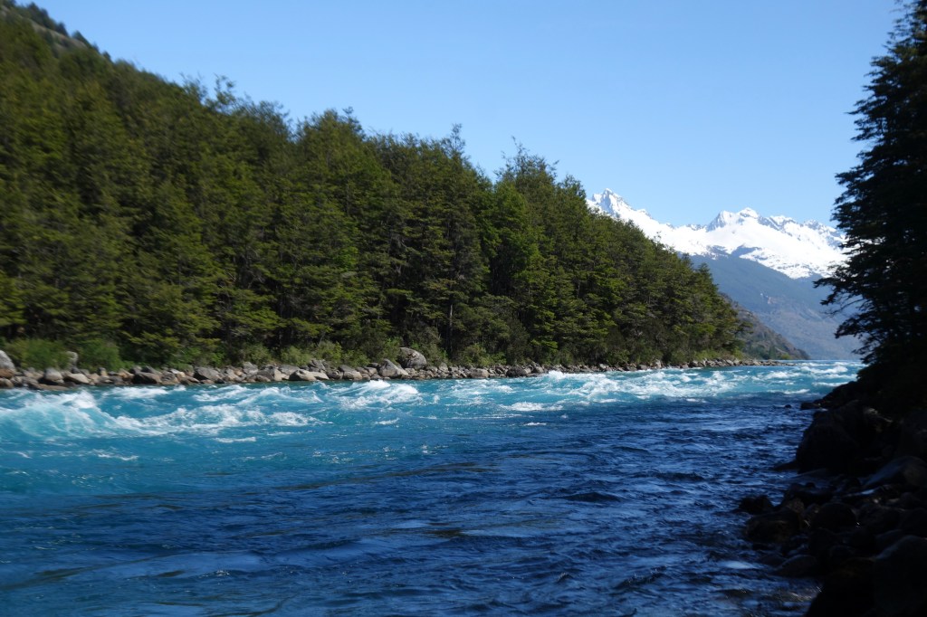 We caught Sophie at the top of the last climb of the day and descended together into the town of Puerto Bertrand. Having had lunch at the headwaters of Lake Bertrand, this town now marked the outflow, where the water continues its journey towards to sea, pouring into the mighty Rio Baker. The flow of water increases significantly as snow melts throughout spring and summer, creating long stretches of thunderous rapids. As a result, Puerto Bertrand has become a renowned white-water rafting destination, with the offices of several tour companies perched on the edge of the lake. Two young girls on bikes, no older than six, followed us through town, desperately spruiking their mum’s hostel and promising that we wouldn’t find anything better if we kept riding. They seemed genuinely perturbed when we said we were hoping to camp further down the valley. I felt a bit bad and hoped that their evening meal wasn’t their commission for bringing in business.