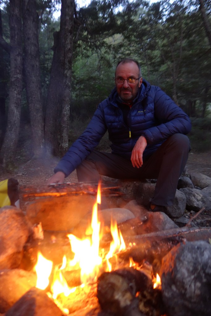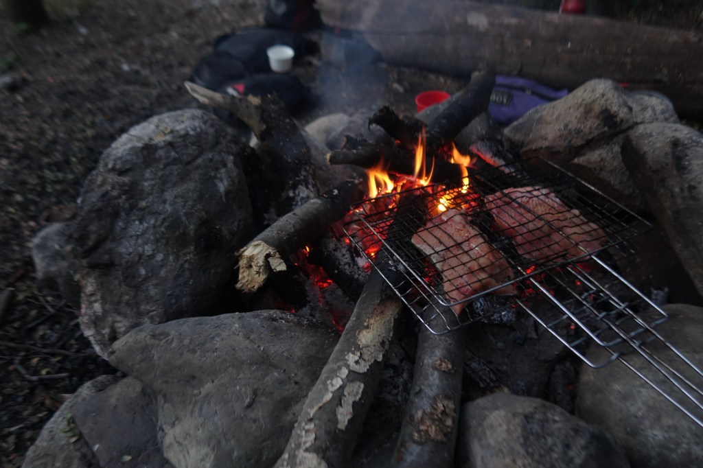We continued along the Rio Baker valley in search of a campsite we had read about that morning. A narrow dirt path led us down a steep bank to where we found several flat sites nestled amongst the trees. The cyan water of the river was visible through breaks in the vegetation as it raced past the darkness of the forest. We set up camp and went about sourcing fallen timber to fill the stone fireplace that had been built and enjoyed by previous campers. The scene was already bordering on perfection. However, just as we’d struck a match to a small pile of twigs, a man and woman appeared from a thicket of trees. They were quick to explain that they had seen us pushing our bikes down to the campsite as they were driving past in their van, before finding somewhere to park a few hundred metres further on. They went on to tell us that they were from France, and in their retirement had bought a Mercedes camper, which they left in Chile and returned to each year. The man was a passionate fisherman and, having seen smoke rising through the trees from our campsite, had decided he’d better bring us something to cook! He proudly gifted us two plump rainbow trout fillets. As if it couldn’t get better, he also lent us a grilling rack for the fire and some spice mix to rub on the fish. He clearly could have kept talking for hours, but his wife physically dragged him back up the hill towards their van, saying that we would want to cook and eat in peace! It was a memorable way to finish what had probably been the most consistently beautiful day on the bike that I’d had the entire trip. I looked over at Dad and could tell that he was also questioning whether life could really be this good! As we sat in a fulfilled silence watching the last of the coals burn down, Dad asked if we thought it would be rude to see if the French couple were also willing to part with some white wine, or maybe even some croissants for the morning! It was time to put the man to bed.