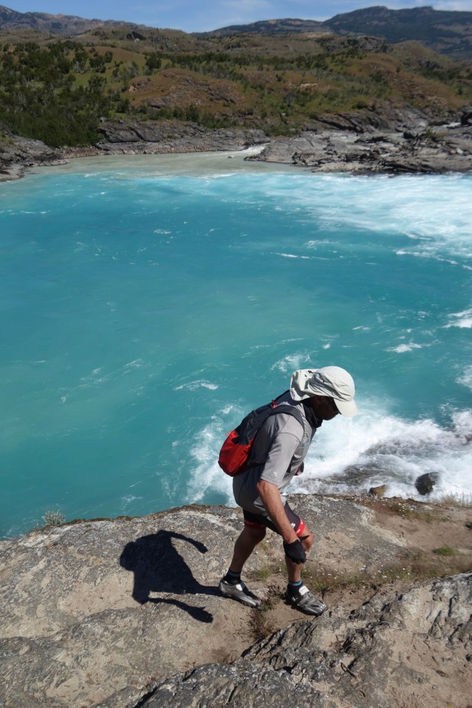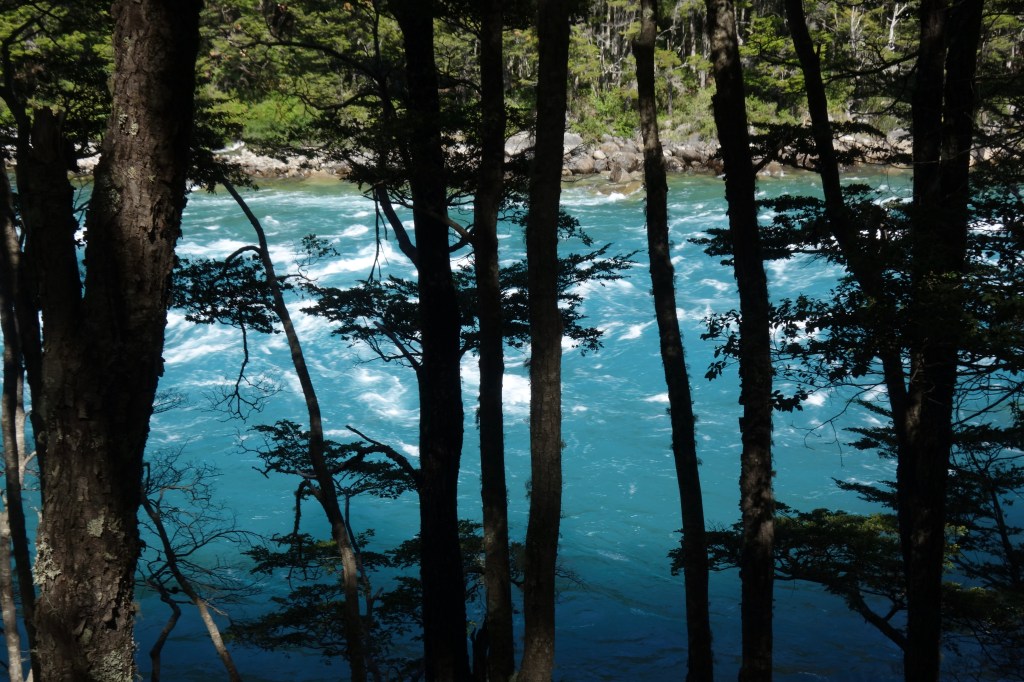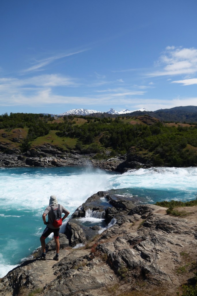 The following morning marked the first day of summer. Sophie was already packed by the time Dad and I got out of our sleeping bags. We had a quick breakfast together before saying goodbye. She was planning on detouring through Parque Patagonia (another of Kris and Doug Tompkins’ gift to the people of Chile) for a few days so we weren’t sure if we’d cross paths again. After slowly breaking camp and packing our bikes, we wandered down the road to return the grill to the French couple. It was amusing to see that Sophie had only made it as far as their van. As we approached, she shot us a look that screamed ‘help!’. It was clear to us that the situation was the product of Sophie’s politeness coupled with the man’s lack of social awareness. He was in full story mode, spinning endless fishing yarns despite constant eye-rolls and throat-clearing from his wife. Our presence only further excited him! With a new audience, he began telling us all about a ‘must-see’ attraction a few kilometres down the road; the confluence between the Rio Baker and the Rio Neff. Renowned for a series of powerful waterfalls, the meeting of the rivers also creates a whirling palette of blues as the milky tones of the Neff flow into the clear, turquoise depths of the Baker. It sounded great, but what he went on to say left us questioning his approach to travel.