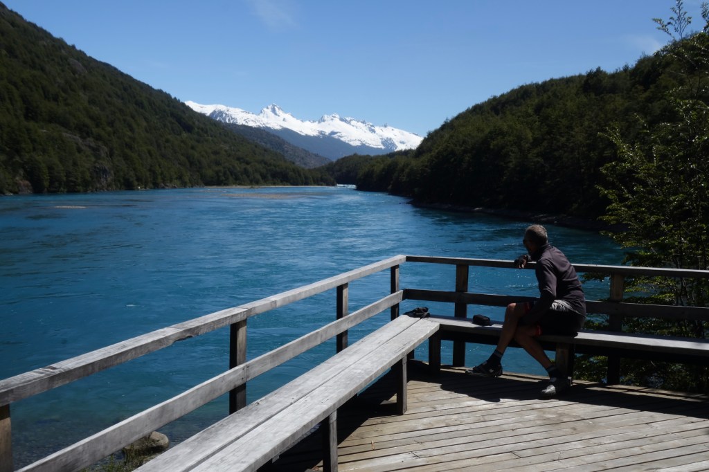 Pushing through some bushes, we stumbled into a scene of Arcadian tranquillity. A triangular-shaped deck extended out from the full glass frontage of the lodge. We stood at the corner of the deck, which was like the bow of a ship, overlooking a calm backwater where the Rio Baker had widened significantly. The view up the valley was unbroken towards churning rapids and high snowy peaks in the distance. When we turned to look at the lodge, the large windows mirrored the scene behind us, creating a 360-degree view of the wilderness. It was hard to comprehend that a place like that existed.