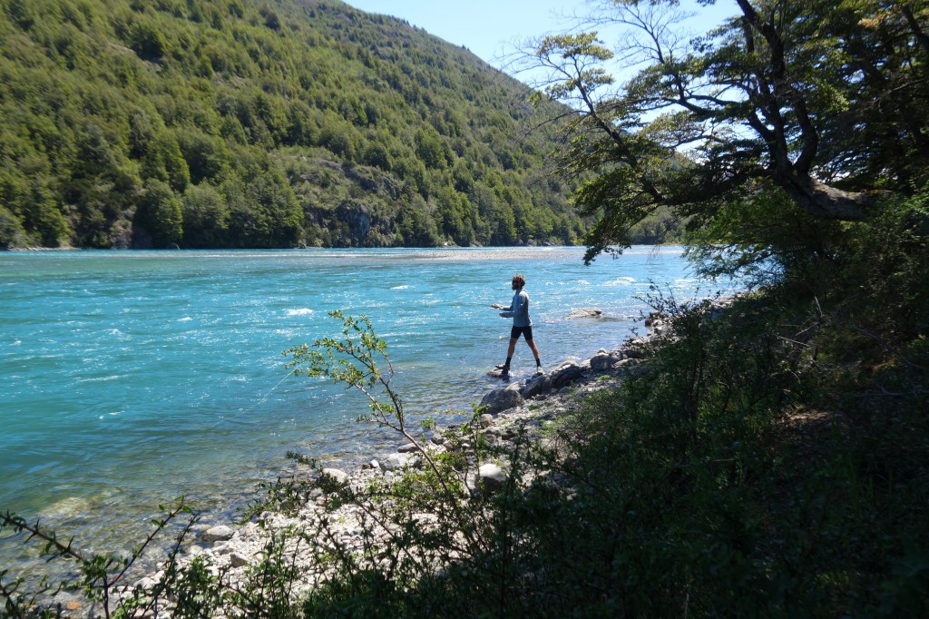 I could see that Dad was starting to question the offer of bringing Mum back to Chile and moving in with Carlos. As we were wandering back to the deck with plans of getting back on the road, I mentioned to Carlos that I have done a bit of fly fishing back in Tasmania. Again, his face lit up as he saw an opportunity to keep us from leaving. He scurried off into the lodge and returned with a rod, reel and a box of flies.
