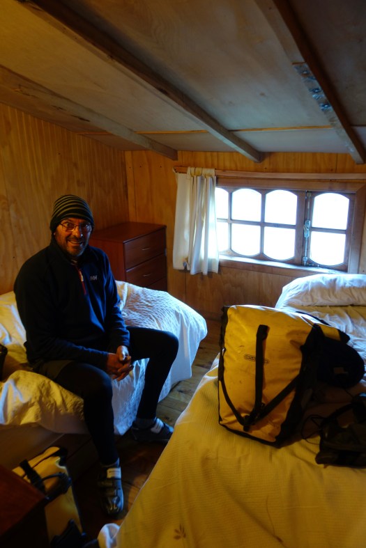 Aside from good shower pressure and a private room, the main perk of paying more for accommodation in South America is often the included breakfast. Aware of our dishevelled facial hair, chapped lips, and clothes overdue for washing, we positioned ourselves deep in the corner of the dining room. Several couples were scattered throughout the room dressed in neat and expensive hiking gear and politely nibbling at embarrassingly small portions. With the intention of practising our best dining etiquette, we carried our small plates up to the breakfast bar where we were confronted with a spread consisting of cornflakes, milk, yoghurt, warm bread rolls, cheeses, jams, butter, juices, and coffee. It was too much for our hungover heads and tired legs. Other guests came and went over the next hour as we continued working our way through the food. Sipping on a final coffee, we turned our chairs towards the dining room window. A view of Fitzroy’s northern flanks catching the morning sun provided the perfect dessert and encouragement to get outside.