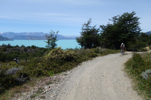 It was an easy roll along the lake’s edge to the customs building. The obligatory flagpoles and neat lawns of this Chilean administrative outpost were in stark contrast to the rugged surrounds. As we parked the bikes and dug out our passports, we were approached by a laid back South African guy who had just completed the border crossing in the opposite direction. He played down the difficulty of the trek from Argentina, although I couldn’t imagine he was the type of person to get worked up or overwhelmed by anything. Having worked in Chilean mines for the last ten years, he told us that he was now living a much more relaxing life in Guatemala where he works as the photographer on a fishing charter boat chasing sailfish. As it was currently hurricane season in Central America, he’d decided to come back down south for a cycling adventure. We soon learnt that he was riding with a Chilean friend, who was inside the customs building being interrogated for failing to get exit stamps on his passport when leaving Argentina earlier that morning. Bureaucracy reaches the wildest places.