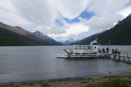 Crawling from the tent the following morning, I had woken from one dream and stepped into another. The clear skies, sunshine, and presence of Fitzroy rendered us speechless, again. A slow, silent breakfast followed by a couple of coffees was enough to dissolve the morning. Suddenly, we spotted the ferry slicing the calm and realised that a few hours had disappeared without trace. We packed carelessly and rushed to the jetty dishevelled and adversely caffeinated. The boat was a catamaran that sat high in the water and had an elongated bow for bikes and gear. With a penchant for anything well-designed and purpose-built, Dad loved it. After stacking and tying down the bikes, we joined the four Canadians inside and settled in for the ride.