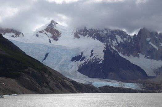 It was mid-afternoon when we arrived at another junction. Dad decided to head back to town and let me explore Lago Torre alone. It was another 4km of walking through more beech forest and along the bank of a churning, turbid river that drained from the lake. I eventually came to the terminal moraine that marked the edge of the lake. The weather had changed over the course of the afternoon and a cold wind tumbled down from the glacier on the opposite shore. Short, sharp waves lapped the rocks at my feet, trying their best to break large chunks of ice that rolled around in the shallows. Unfortunately, cloud had now filled the valley and the mountains above the distant glacier were now obscured. One of these peaks, Cerro Torre, holds a special place in climbing history, and I was eager to spend time in its presence. Jon Krakauer, author of ‘Into the Wild’, wrote about Cerro Torre in his book, ‘Into Thin Air’. Describing notable climbing accomplishments in his life, Krakauer explained how he has once “scaled a frightening, mile-high spike of vertical and overhanging granite called Cerro Torre; buffeted by hundred-knot winds, plastered with frangible atmospheric rime, it was once (though no longer) thought to be the world’s hardest mountain“. A friend from Tasmania had also summited a few years earlier and I was eager to pay a quiet homage to his achievement. I sat for a while, breathing in the glacial air and trying to picture the granite finger of Cerro Torre pointing to the moon on a cloudless night.