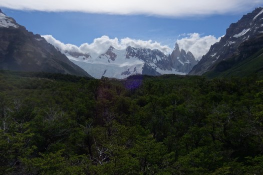 The Lago De Los Tres trailhead was located a few hundred metres from the edge of town. From the road, the trail climbed gently and offered views back down the valley we’d ridden along a few days earlier. Ducking in and out of stands of gnarled beech trees, the trail crossed countless crystalline creeks and skirted glacial tarns of varying blue and green hues. All the while, Fitz Roy’s arresting rocky spine loomed on the horizon. After a few hours of pleasant walking, the trail passed through a campground where a number of people were setting up tents, including the four Canadians who were planning on spending a couple of days on the trail. We chatted for a while, acknowledging that our itineraries were unlikely to cross again and thanking each other for the company.