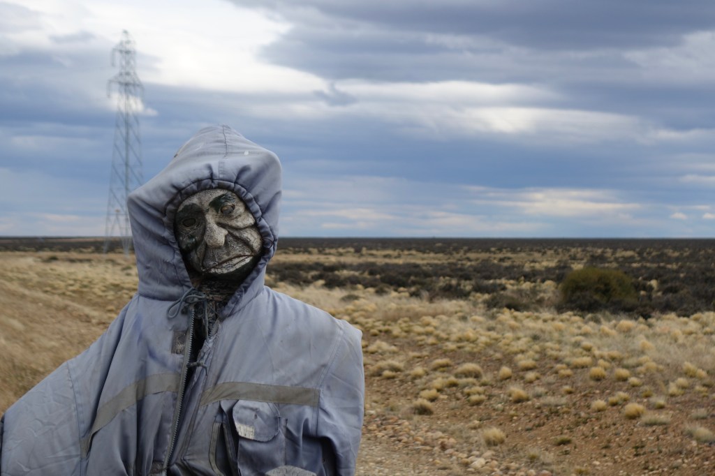 Despite our concerns, we committed to the unknown and turned onto the Ruta 7. A haunting, weather-beaten scarecrow hung from a post beside a cattle grid, marking the beginning of the ripio. The road was indeed horrendous. Coarse gravel and unforgiving corrugations providing limited options for smooth lines. We tried riding in the ditch beside the road but would lose control of our front wheels in the deep sand. There was no choice but to embrace the bone-jarring path forward and keep our eyes peeled for a suitable campsite.