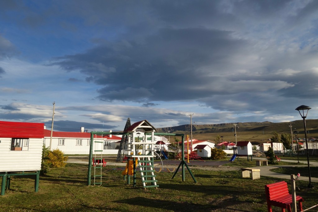 Two of the riders were a Colombian couple who had been on the road for several months. They had ridden south from Buenos Aires to Ushuaia and were now on their way back home to Colombia. They had recently been joined by a friend from Chile and the three of them had spent the last few days riding through Torres del Paine. They explained how strong the wind had been and there was no way anyone could ride into it, which is exactly what we had been planning to do. These comments were all the encouragement we needed to call it a day and spend the evening working out what to do next. The Colombians said that they’d heard there was only one hotel in town and were on their way to check it out. We followed.