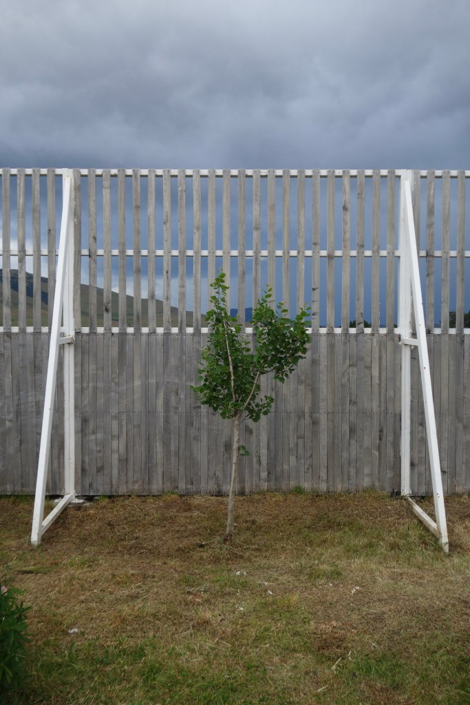 The five of us rode to the playground to discover a beautiful park full of purple lupins and manicured grass. The most remarkable feature, however, was a five-metre-tall timber fence that ran along the entire southern and western sides of the park. Reinforced by closely spaced steel beams, the only purpose of this impressive piece of infrastructure was to shelter the park from the prevailing winds. An investment such as this fence highlighted the fact that these fierce winds weren’t an anomaly in the area. We took advantage of this gargantuan barrier and set up our tents amongst the flowers, listening to the gale-force wind pounding the fence, squealing as it squeezed though any small cracks.